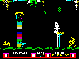These were done over a couple of evenings. I think we may have been “advised”, by the distributors who controlled the UK market at that time, that it would behoove us to support the new 128KB variants of the Sinclair Spectrum. We were not convinced that the market penetration would be there and wanted to spend a minimal amount of effort, so we basically filled memory with various voice samples that were played at various (sometimes inopportune - gameplay paused while a sample was played) places in the games. The sample playback was just about intelligible, utilizing 1.5 bits - just like the Nodes and Robin intro speech. The music for the 128K versions was upgraded to AY versions (source data pulled variously from the 48K and C64 versions of these games). My AY sound chip experience came from my Amstrad work at Software Projects, so this was a breeze. If I remember correctly, the voice behind all the sampled speech was that of Andy Walker, composer of the RotW and Arc music, among others).